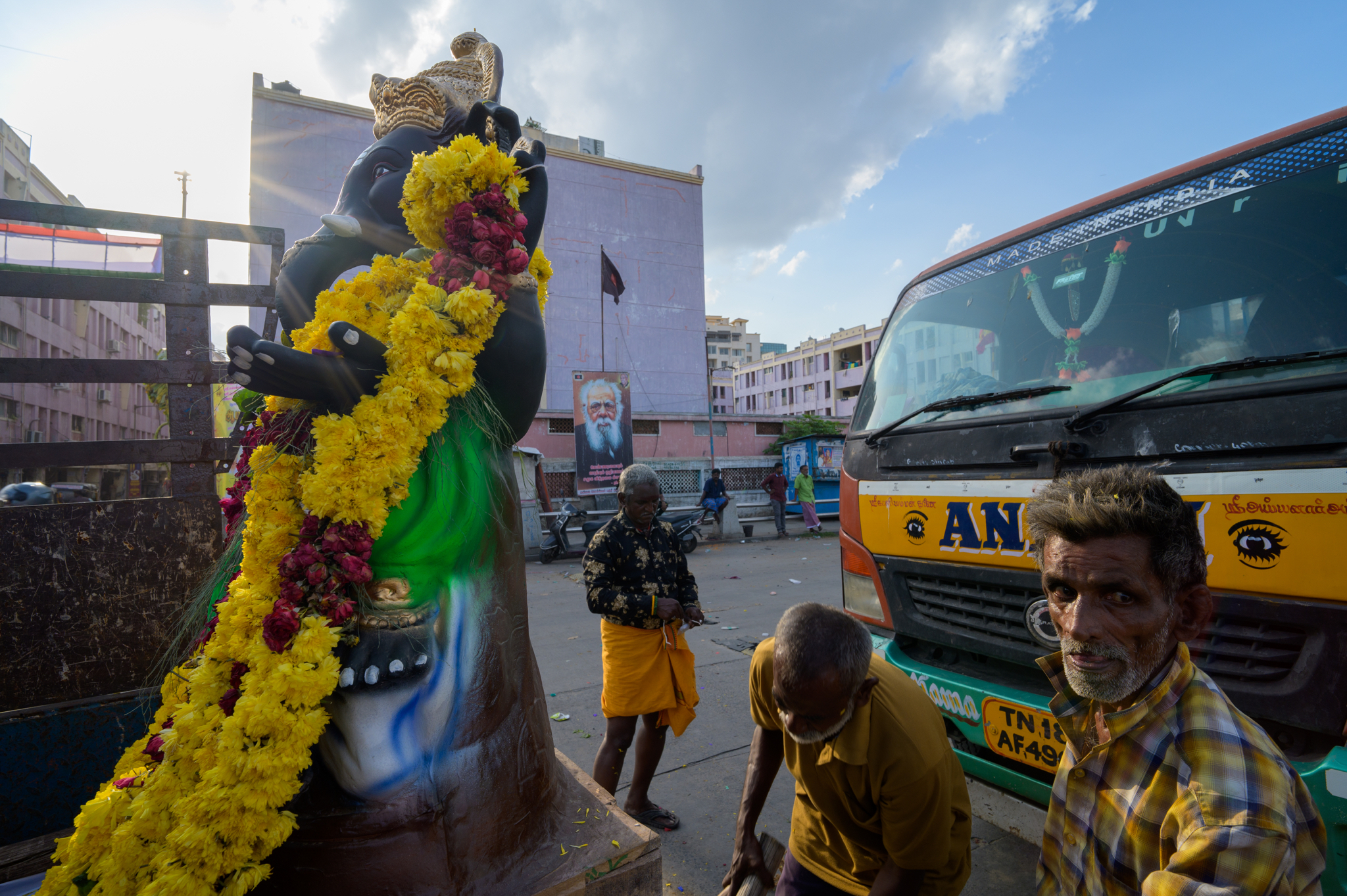 These images are from Ganesh Chaturthi celebrations in Chennai. It may not be of the scale that is generally seen in cities like Mumbai, however, the festival here offers a unique perspective into human emotions and a culmination of the society coming together to celebrate Lord Ganesha. While the focus of documenting festivals has always been the core event of the festival, I rather chose to focus on the human side of the festival, the emotions of the people, and our cultural fabric. One particular image that had a lasting impact on me was the one in which Periyar, Pillayar and People were together in a single image. Tamilnadu is a unique state that has reverence for both reasoning and belief; probably that’s the reason for its unique cultural value and its affinity towards language, along with maintaining a balance of revolution and belief. These images are from 2023 & 2024 and I’ll continue to document the festival in the years to come.