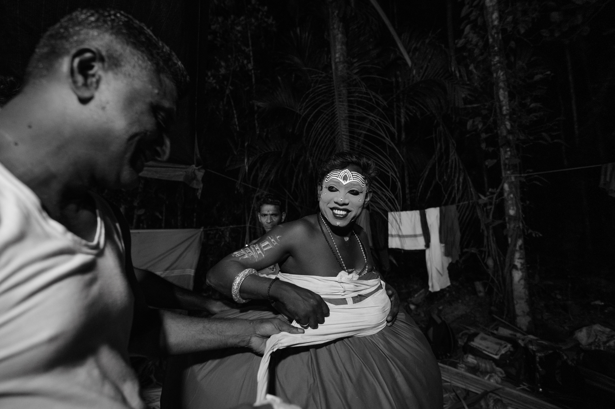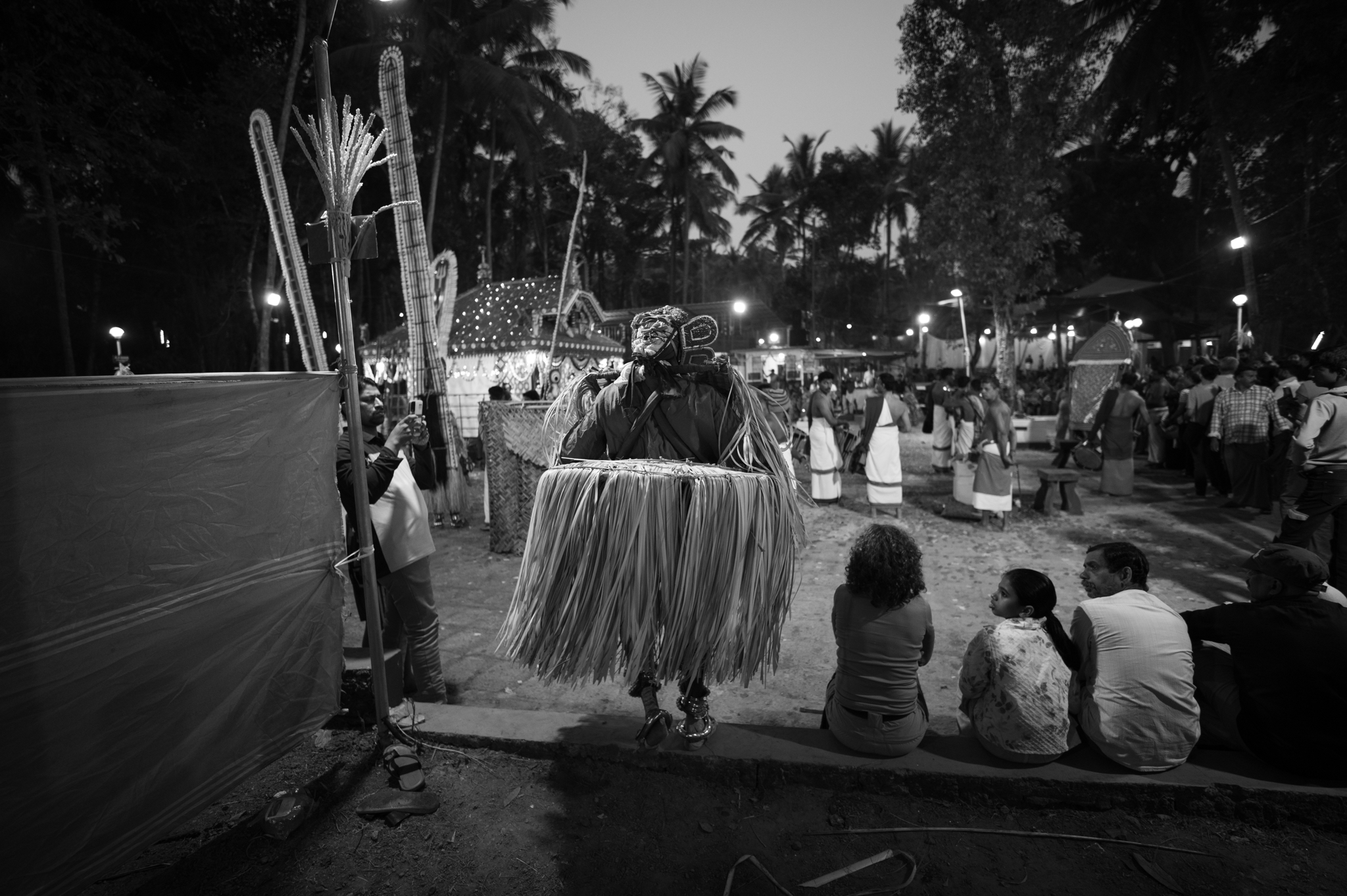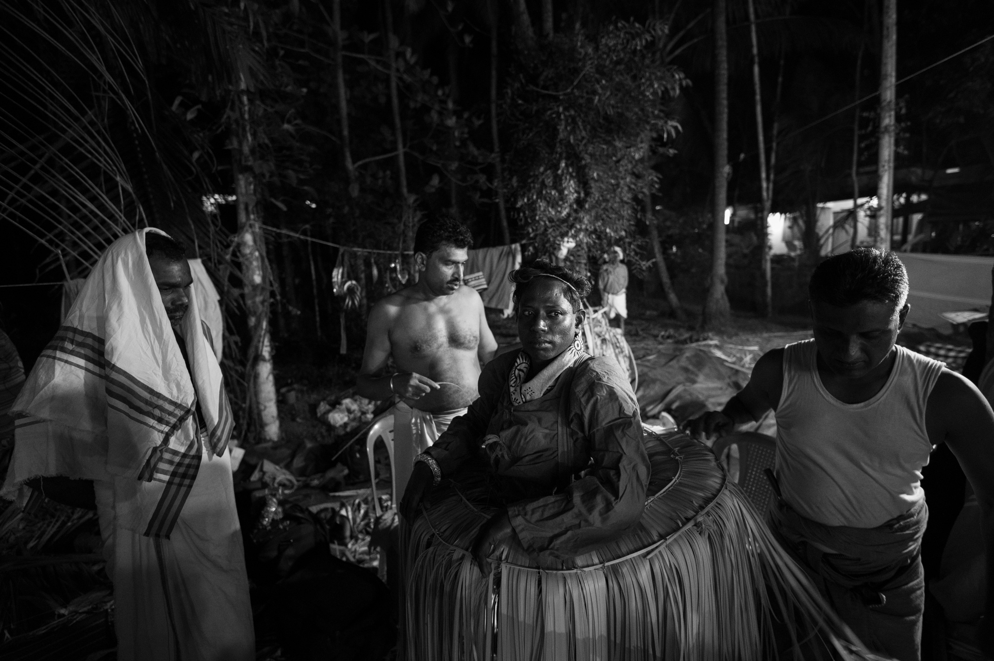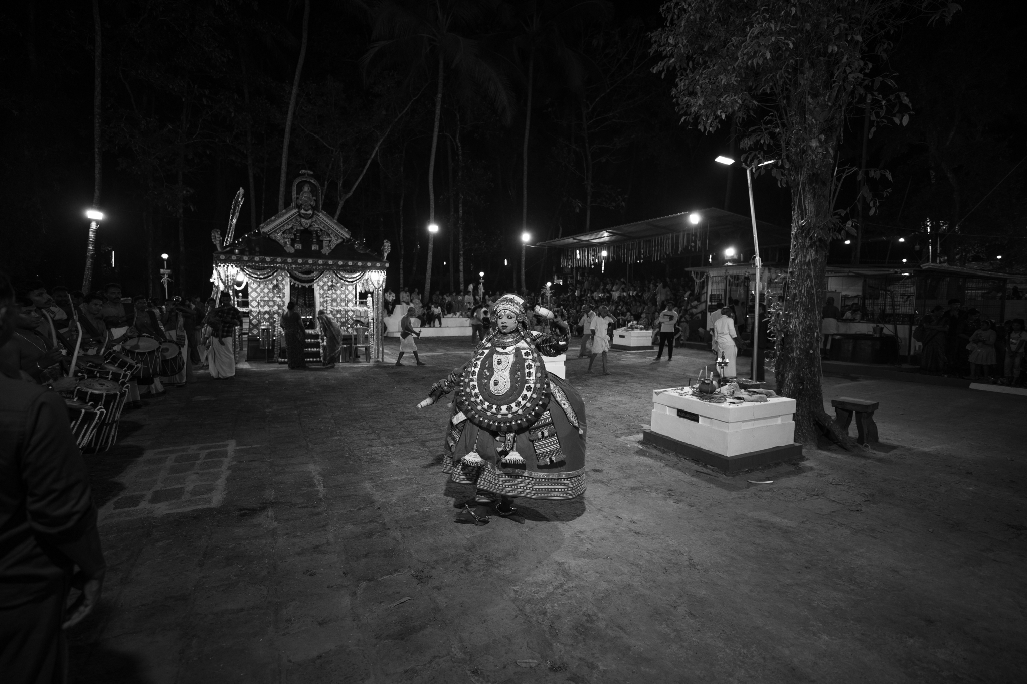 In this gallery, I’ve captured the story of Mukesh Paniker, a Theyyam artist who has been practicing this sacred art since the age of 6. Rather than showcasing the grandeur of the performance itself, I wanted to document the unseen labor and dedication that go into it. Mukesh’s journey is one of devotion and discipline, involving hours of meticulous preparation, from applying layers of traditional makeup to enduring the physical strain of his elaborate costume. Through these images, I’ve focused on the quieter moments of reflection and the artistry that transforms him into a divine figure. This gallery offers a glimpse into the immense hard work that fuels the art of Theyyam, as seen through the eyes of an artist who lives it.