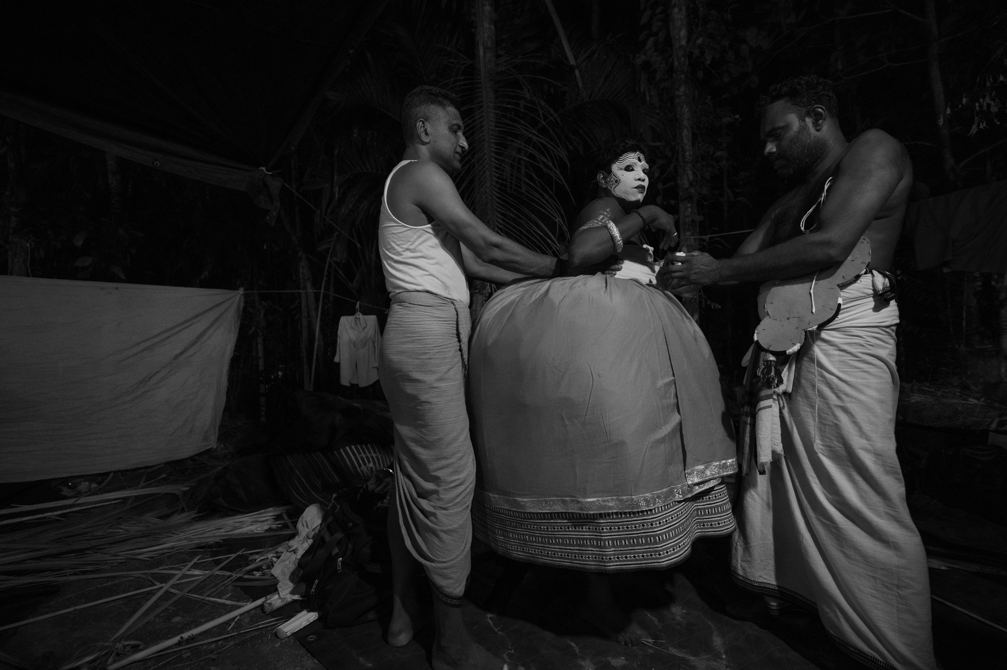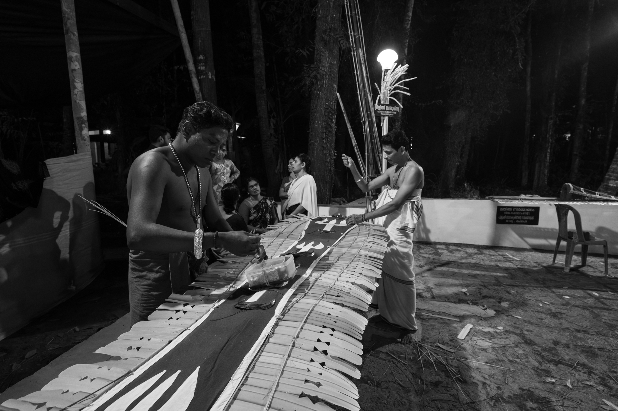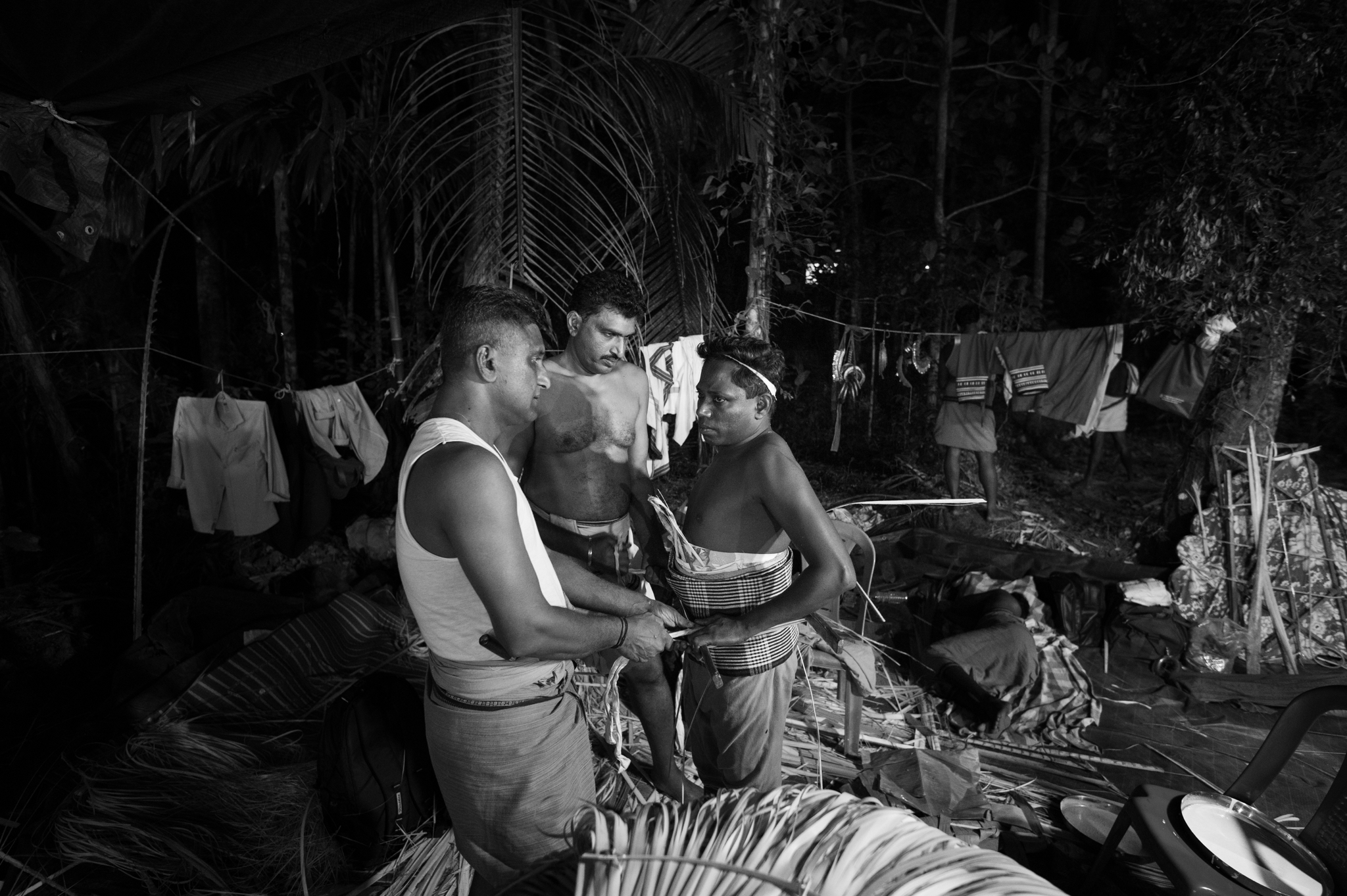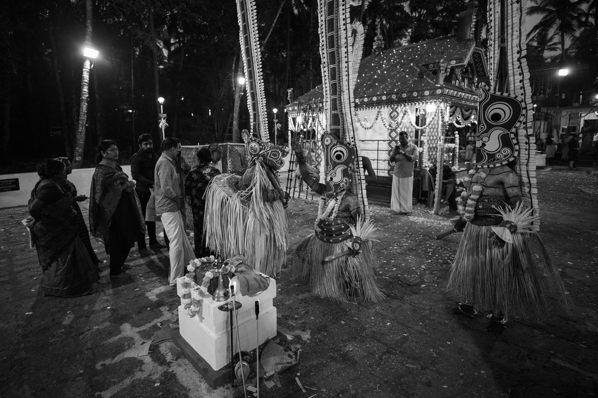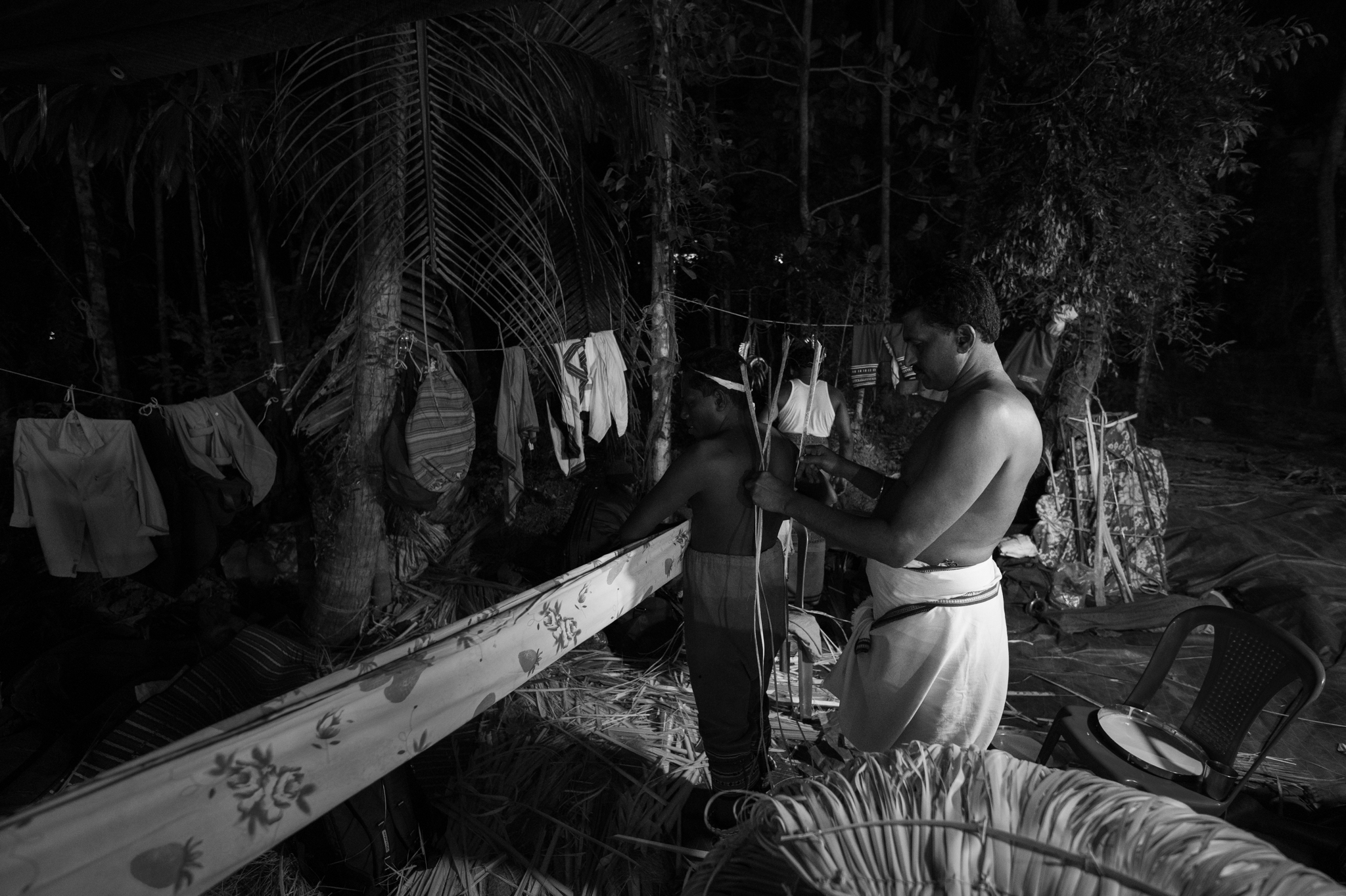 In this gallery, I’ve captured the story of Mukesh Paniker, a Theyyam artist who has been practicing this sacred art since the age of 6. Rather than showcasing the grandeur of the performance itself, I wanted to document the unseen labor and dedication that go into it. Mukesh’s journey is one of devotion and discipline, involving hours of meticulous preparation, from applying layers of traditional makeup to enduring the physical strain of his elaborate costume. Through these images, I’ve focused on the quieter moments of reflection and the artistry that transforms him into a divine figure. This gallery offers a glimpse into the immense hard work that fuels the art of Theyyam, as seen through the eyes of an artist who lives it.